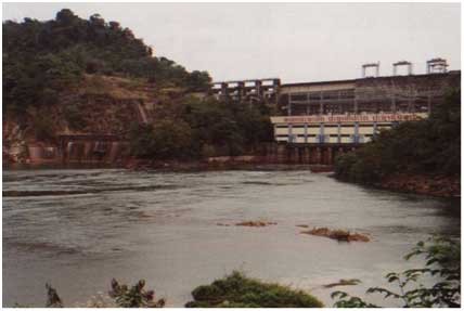 Nam Ngum con đập thủy điện đầu tiên 1971 của quốc gia Lào, tấm biểu ngữ giăng ngang con đập đánh dấu 25 năm thống nhất nước Lào 1975-2000. nguồn: photo 2000 by Ngô Thế Vinh