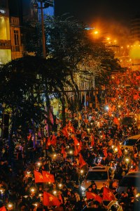đổ ngập đường phố phất cờ hoan ca