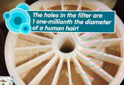 Hình 5: Tiếp theo đó, nước biển được lọc khử mặn với kỹ thuật “thẩm thấu đảo nghịch – reverse osmosis qua các tấm màng lọc”. Các lỗ của màng lọc có kích thước cực nhỏ chỉ bằng 1 phần triệu đường kính của sợi tóc. (1,2)