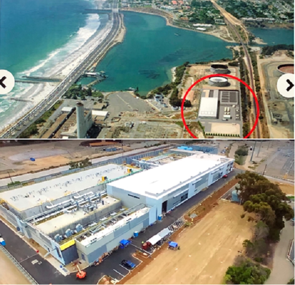 Carlsbad, CA 92008. Dự án US$ 784 triệu USD được thực hiện với tiền cổ phiếu – bond. Và sau đó bán lại cho tư nhân với giá 1 tỷ USD. Nhà máy mỗi ngày sản xuất 50 triệu gallons nước ngọt [tương đương với 190,000 mét khối nước], từ nguồn nước biển, đủ cung cấp nước cho 400,000 ngàn cư dân Quận hạt San Diego; với giá thành ½ xu [half a penny] cho một gallon. The San Diego County Water Authhority – SDCWA đã gọi nơi đây là “nhà máy khử mặn nước biển lớn nhất nước, với kỹ thuật tiên tiến nhất, và sử dụng năng lượng hiệu quả nhất – energy efficient.”
