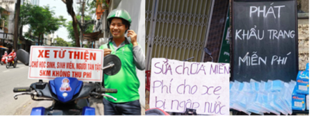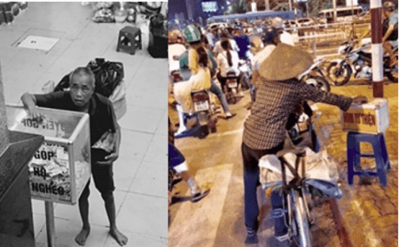 Qua tháng 11 năm rồi, 2019 – trên trang FB Lê Huy Cầm – có hình một một phụ nữ lam lũ dừng xe giữa giữa phố phường ̣(Hà Nội) đút tiền ủng hộ những người khuyết tật, cùng với lời bình: “Nghèo tiền bạc nhưng tình yêu không nghèo, tôi thấy tấm hình này đang tỏa phật quang.” Cũng vào thời điểm này, ở chợ Đồng Xuân, bạn Nguyễn Tiến Đức đã thu được qua ống kính bức ảnh của người đàn ông (vô gia cư) đang bỏ chút tiền lẻ vào thùng từ thiện để giúp trẻ em nghèo.