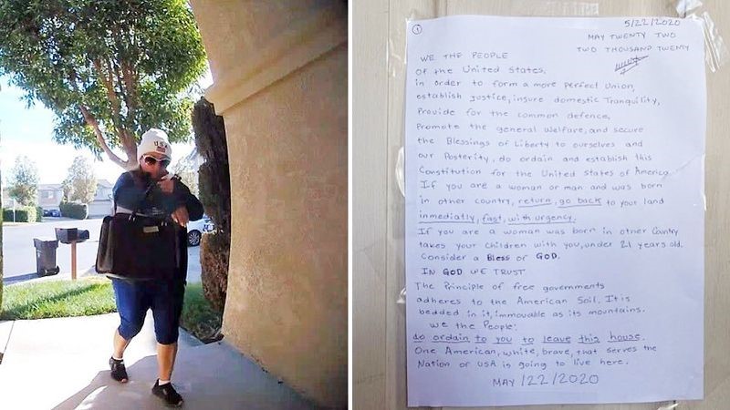 Chúng tôi, nhân dân nước Mỹ: ra lệnh cho các người phải ra khỏi căn nhà này. Một người Mỹ khác, da trắng, can đảm, đang phục vụ nước Mỹ sẽ vào ở trong căn nhà này. Thời hạn chót cho các người rời khỏi nơi này là 10:30 sáng thứ Bảy 23-5-2020. Không một kẻ châu Á nào được phép sinh sống nơi đây”.