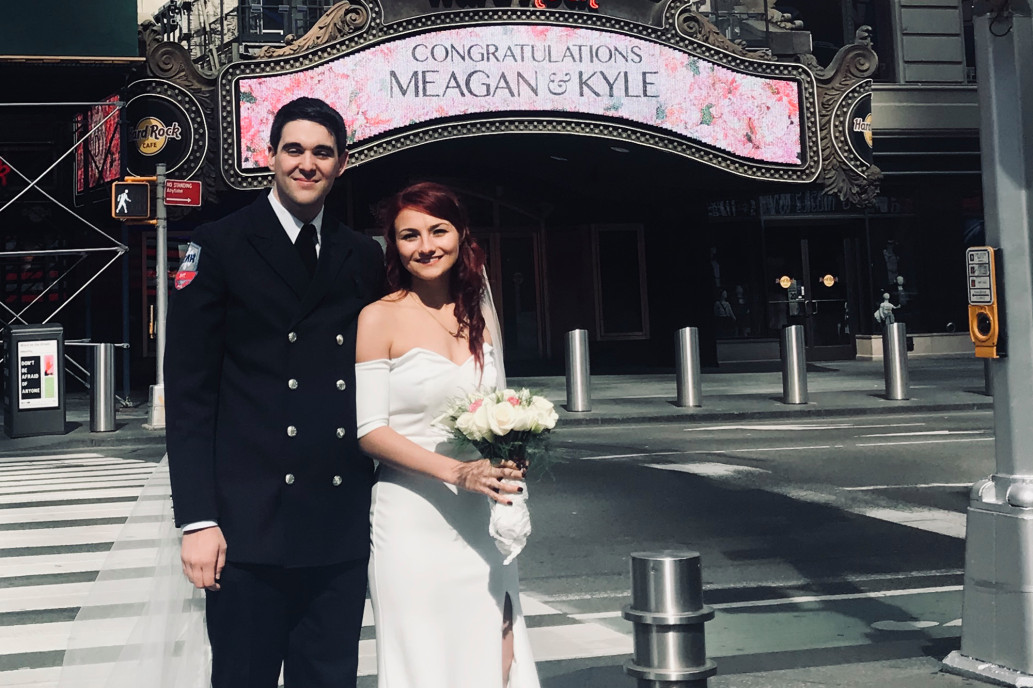 Đám cưới thời Covid-19 của hai nhân viên trên tuyến đầu chống dịch: Kyle Short, 26 tuổi – Emergency Medical Technician -, và Meagan Herlihy, 25 tuổi – Paramedic – được tổ chức với hình thức “virtual wedding” hôm nay ở Time Square New York live trên chương trình TV mỗi sáng “Good Morning America” (GMA) được cả nước Mỹ cùng chúc mừng.