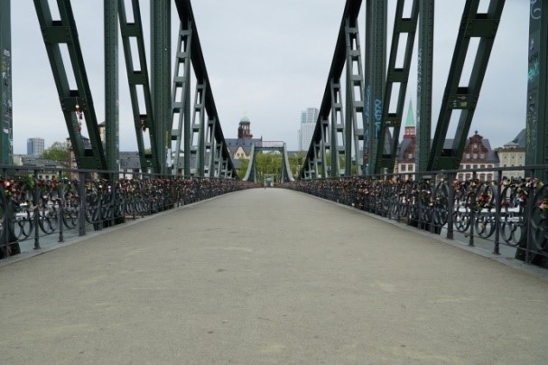 Cây cầu sắt (Der einserne Steg) nổi tiếng ở Frankfurt, bình thường rất đông