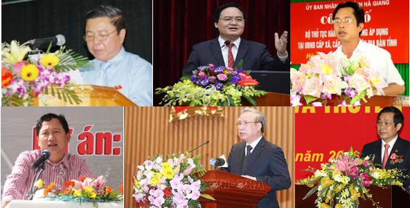Bởi vậy ở thời này (thời đểu cáng đã lên ngôi) hoa được dùng để trang trí cho mọi dịp hội họp, và để làm đẹp cho tất cả qúi vị lãnh đạo các cấp, chớ đâu có riêng chi ông Lê Thanh Hải. Thử ngó hình những đảng viên tăm tiếng ̣(và tai tiếng) nhất của ĐCSVN coi, họ đứng đâu, ngồi đâu mà không có một lẵng hoa bên cạnh.