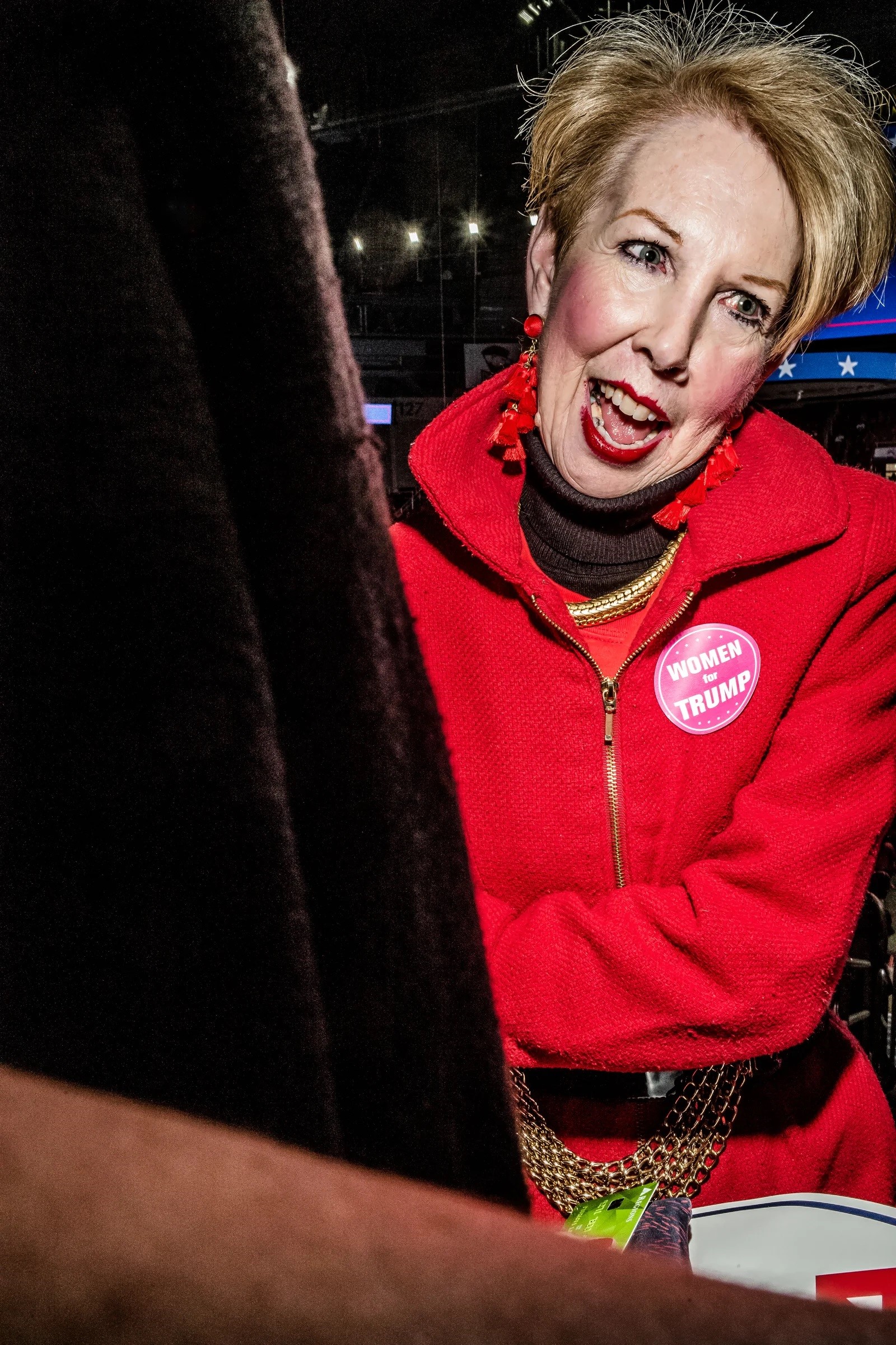 Sau đó, tôi có hỏi vài người bạn của Diane xem coi họ có cùng chia sẻ những quan tâm như Dian hay không. Một số bảo không, họ không nghĩ có chuyện ăn thịt người ở đây. Chỉ có tệ nạn ấu dâm thôi. Số khác tin chắc bọn Clintons là một lũ sát nhân, “Arkan-cide”. Nhưng vào giờ khắc này đây, ở cuộc tập họp vận động tranh cử của Trump, chỉ có tình cảm đồng chí dành cho Diane. Một phụ nữ mặc bộ trang phục Trump xanh đỏ trắng rất ấn tượng đang quàng tay ôm vai Diane, người chị em cùng một lòng một dạ yêu Trump (sister-in-Trump) của mình đang run rẩy vì xúc động.