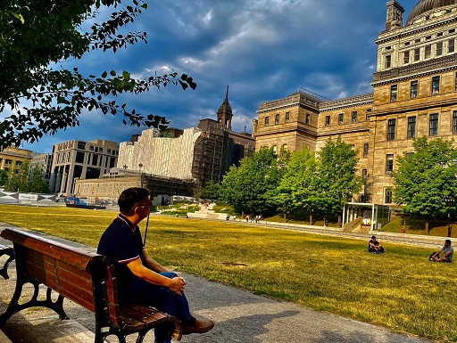 Tặng Nguyễn Huy Tố, một bạn thơ thân thiết của tôi đang thăm con cháu ở xứ sở tuyết lạnh Canada, trong đêm trăng sáng đẹp quá, bạn đã đi lang thang rồi ngồi ghế đá lạnh ngắm trăng.