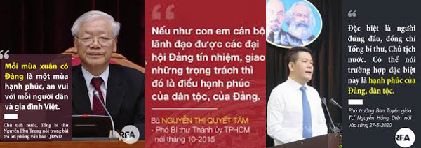 – Nguyễn Phú Trọng, TBT kiêm CTN: “Mỗi mùa xuân có Đảng là một mùa hạnh phúc an vui.”