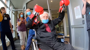 Ngày ông xuất viện, cả bệnh viện đều lạc quan, vui mừng. Họ tiễn ông ra tận cửa bệnh viện, đeo cho ông một cặp găng tay boxing màu đỏ, và cho phát một bài hát trong album “Rocky” từ 43 năm trước như là một biểu tượng của việc chiến đấu và đã thắng được bệnh tật của ông Carnaroli.