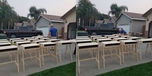 “Kẻ góp công, người góp của”, họ cùng có tấm lòng nên đã cung cấp được 37 cái bàn học cho các em học sinh ở địa phương tính đến trung tuần tháng 9. Và vẫn còn tiếp tục trong tình hình bàn học, bàn làm việc đang bỗng dưng tạm thời khan hiếm trong thời đại dịch khi người lớn làm việc ở nhà, và các em học qua màn hình computer.