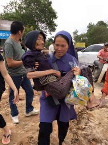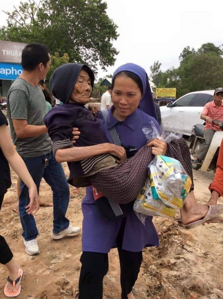 sœur gắng sức bồng cụ già