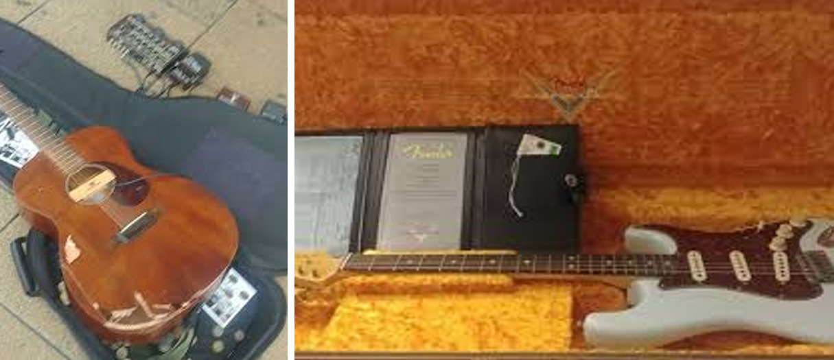 The broken guitar & The gifted new guitar from Jack White (courtesy of Matt Grant)