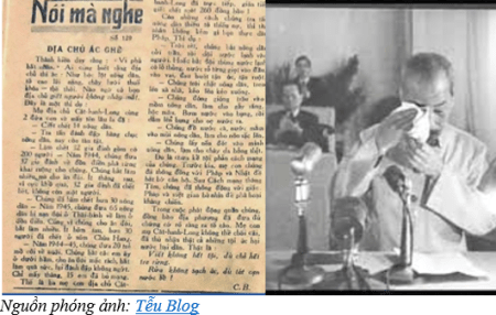 Mua áo quan được thì không cho bà ta vào lọt. Du kích mấy người bèn đặt bà ta nằm trên miệng cỗ áo rồi nhảy lên vừa giẫm vừa hô: ‘Chết còn ngoan cố này, ngoan cố nổi với các ông nông dân không này?” Nghe xương kêu răng rắc mà tớ không dám chạy, sợ bị quy là thương địa chủ. Cuối cùng bà ta cũng vào lọt, nằm vẹo vọ như con rối gẫy vậy.” (Trần Đĩnh. Đèn Cù, Westminster, CA: Người Việt, 2014).