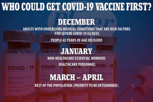 1. Những người làm việc ở “tuyến đầu chống dịch”: các bác sĩ, y tá, nhân viên bệnh viện, nhân viên y tế; những người trên 65 tuổi, và những người có bệnh mãn tính dễ nhiễm Coronavirus sẽ được chích ngừa đợt đầu.