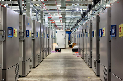 Vaccine của Pfizer trong 350 freezers ở -94 độ F (Michigan)- Courtesy of Pfizer & www.dailymail.co.uk