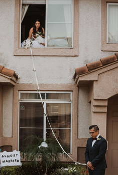 Một lần nữa hôn lễ của họ gặp trở ngại, cô dâu Lauren Jimenez có COVID-19 test dương tính chỉ vài ngày trước ngày đám cưới 20 tháng 11. Họ không muốn thay đổi thêm một lần nữa, vả lại marriage license của họ sắp hết hạn, nên cả hai đã có một “COVID-19 wedding” rất đặc biệt.