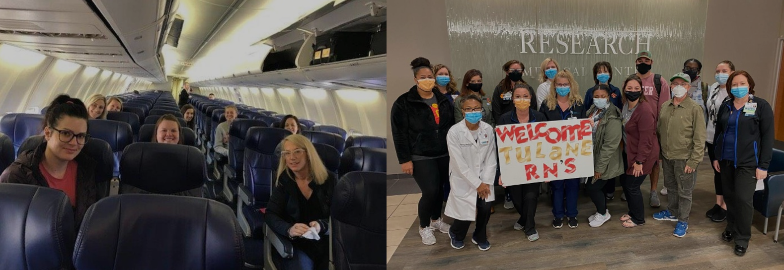 Kansas City nurses flew to New Orleans to help out. / New Orleans nurses arrived to help Kansas City in NOV at Tulane Medical Center in APR Courtesy of HCA Healthcare & CBS News