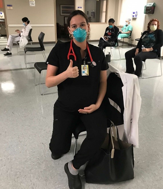 Bác sĩ Nayeli Rodulfo-Zayas làm việc ở phòng cấp cứu một bệnh viện ở San Antonio Texas được chích thuốc ngừa COVI-19 lần hai khi bà đang ở tuần thứ 35. Bà muốn kể lại kinh nghiệm của bản thân mình để khuyến khích các sản phụ đang có thai nên xin ý kiến của Bác sĩ sản khoa của mình, và mạnh dạn lấy hẹn để được chích ngừa khi đến lượt mình.