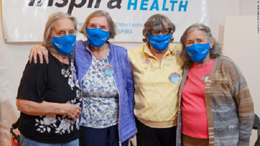 Hôm nay, Inspira Medical Center Mullica Hill, phía Nam của Philadelphia, tiểu bang Pennsylvania ở Đông Bắc Hoa kỳ đón tiếp bốn người khách đặc biệt. Bốn cụ bà cùng hẹn nhau đi chích ngừa COVID dose thứ hai Đặc biệt hơn nữa, họ là bốn chị em ruột.