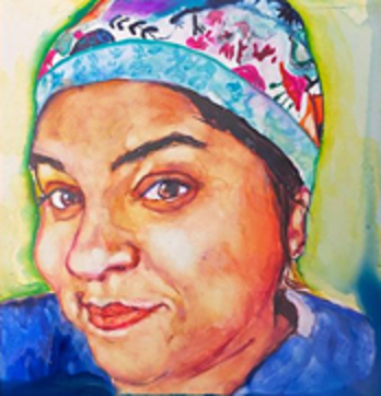 Tháng 3 năm ngoái khi đại dịch bùng phát, cả nước Mỹ bị lockdown, bà đón sinh nhật 50 của mình lặng lẽ với màu sắc của hội họa. Một trong những bức tranh bà vẽ rất có hồn là chân dung của một người em họ làm việc trong một bệnh viện ở Michigan 13 tiếng mỗi ngày, bảy ngày một tuần, trong suốt thời gian đại dịch.