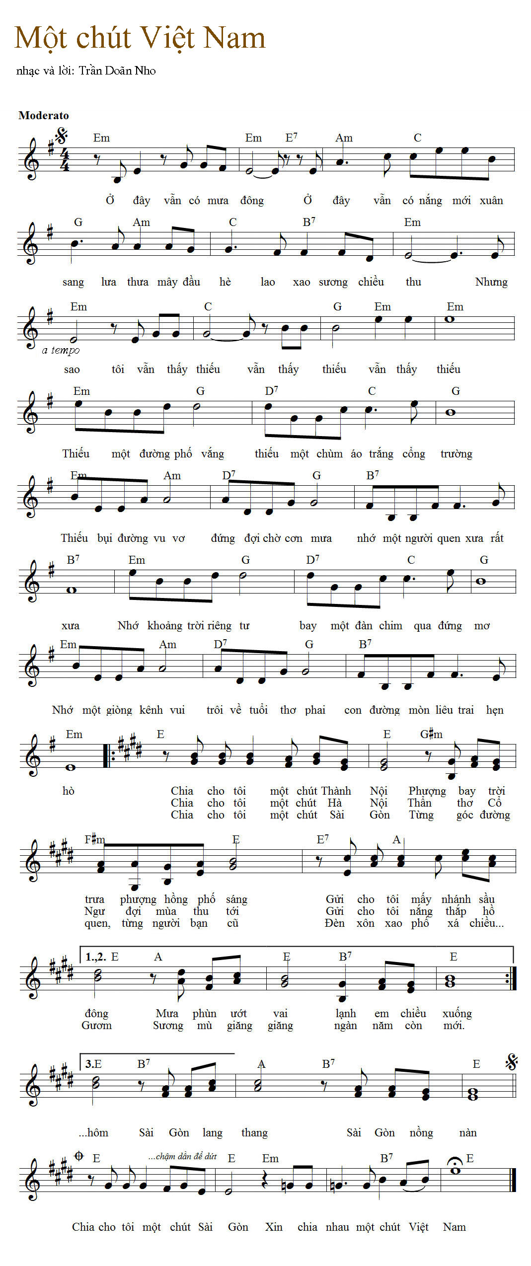 Nhạc và lời: Trần Doãn Nho; Hòa âm: Nguyễn Trọng Khôi; Tiếng hát: Nguyễn Ngọc Phong https://sangtao.org/wp-content/uploads/2012/03/mot_chut_vietnam.mp3 Nguồn: Nguyễn Trọng Khôi gửi nhạc và mp3 file