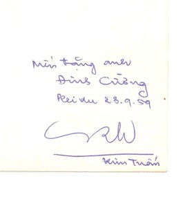 …” Tôi được đọc thơ anh đã lâu, nhất là cứ vào tối ba mươi tết mỗi năm là tôi đón đợi nghe bài thơ được phổ nhạc của anh . Có một cái gì dịu dàng trong đó. Có không khí của mùa Xuân trong đó, mùa Xuân trong lòng người xưng em. Anh cho em mùa Xuân… tôi liên tưởng đến bài Sonnet của Arvers. Nhất định là nó sẽ sống như Sonnet d’ Arvers, như Valses của Johann Strauss… “ ( Võ Hồng, trích thư riêng ngày 8-7-1971, in ở bìa sau tập thơ Thời của trái tim hồng – 1990 ) . Nụ hoa vàng ngày xuân, bài thơ năm chữ, 38 câu, làm năm 1961, thời Kim Tuấn vừa hơn hai mươi tuổi, chúng tôi là bạn của nhau từ thời gian đó, còn giữ trong album ảnh Kim Tuấn đề tặng từ Pleiku năm 59 . Kim Tuấn hiền lành, mập mạp, da hơi ngâm đen với nụ cười híp mắt. Ba anh dáng phương phi cao to, mẹ anh còn giữ được hàm răng đen như các bà cụ xưa. Quê quán gốc Hà Tĩnh, vào Huế rồi vào Phan Thiết, Pleiku lập nghiệp. Thời gian sau cùng ở Sài Gòn . Anh là con trai một nên rất được nuông chiều. Những năm 1960 chúng tôi thường gặp nhau trong những không khí văn nghệ như Đàm trường viễn kiến của Nguyễn Đức Quỳnh, Câu lạc bộ văn hoá của Phạm Xuân Thái, thường đi với Định Giang, Ninh Chữ, Hoàng Trúc Ly…nay các bạn đã không còn .