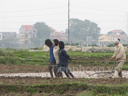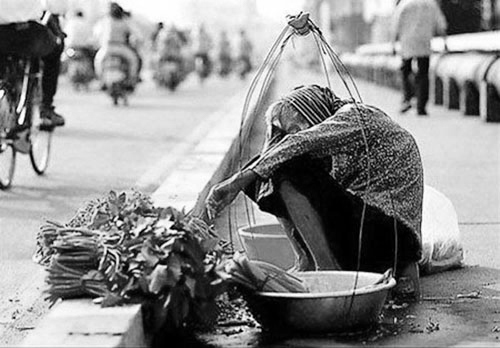 Cứ hai người một, người trước người sau khênh một cái ki trên chất một trọng lượng đá xanh nặng không dưới bảy tám chục ký.