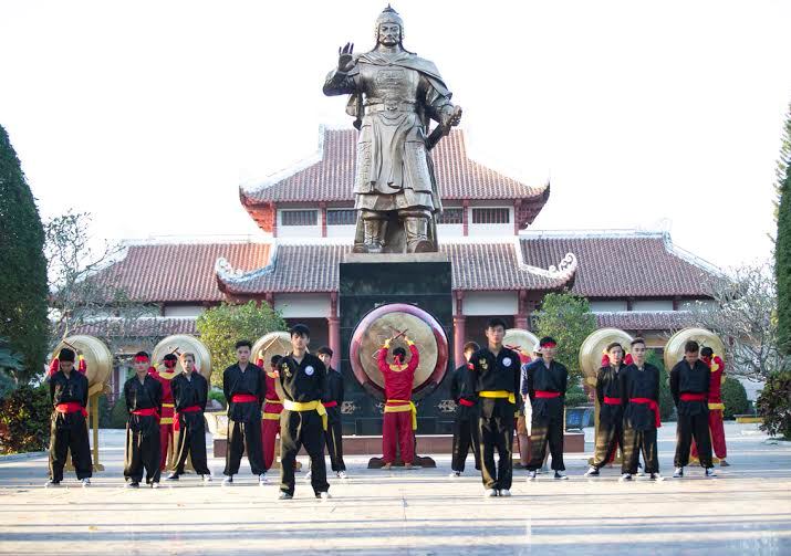 Uống nước mát từ giếng nước của khuôn viên bảo tàng Quang Trung – Ảnh: NH